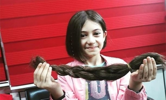 Hatay’ın Payas ilçesinde 10 yaşındaki Kerime Ela Acar, Kanser Savaşçıları Derneği tarafından kanser hastalarına peruk yapımında kullanılmak üzere başlatılan “Saçım Saçın Olsun” projesine destek için saçlarını kestirip derneğe bağışladı.