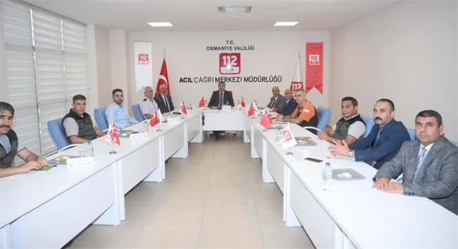 Osmaniye 112 Acil Çağrı Merkezi İl Koordinasyon Kurulu Toplantısı Vali Dr. Erdinç Yılmaz başkanlığında 112 Acil Çağrı Merkezi toplantı salonunda gerçekleştirildi. Toplantıya Vali Yılmaz’ın yanı sıra, Belediye Başkan Vekili Mehmet Hulusi Akkuş, Vali Yardımcısı Adem Yılmaz, İl Jandarma Komutanı Jandarma Albay Can Altundarak, İl Emniyet Müdürü Ahmet Selçuk Okumuş, İl Sağlık Müdür Vekili Dr. Ender Erikan, İl Afet ve Acil Durum Müdürü Serhat Bulut, Orman İşletme Müdürü İsmail Dilek, Osmaniye Doğa Koruma ve Milli Parklar Şube Müdürü Oktay Deniz, 112 Acil Çağrı Merkezi Müdürü Guddusi Arık, Kadirli Orman İşletme Müdürü Adem Sarıbıyık ve Düziçi Orman İşletme Müdürü Harun Demircioğlu katıldı.
