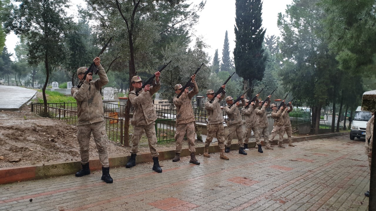Garnizon Şehitliği’ne düzenlenen törende, askerler tarafından saygı atışı yapıldı, şehit mezarı başında dua edildi.