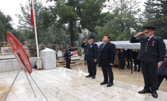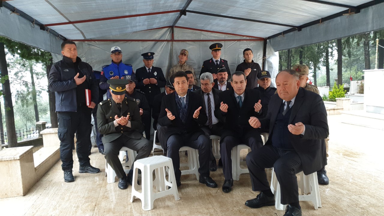 Tören, saygı duruşu ve istiklal marşının okunması ile başladı. Saygı atışı ve çelenk sunumunun ardından İlçe Müftüsü Necati Gündoğdu tarafından Kuran-ı Kerim okunarak dua yapıldı.