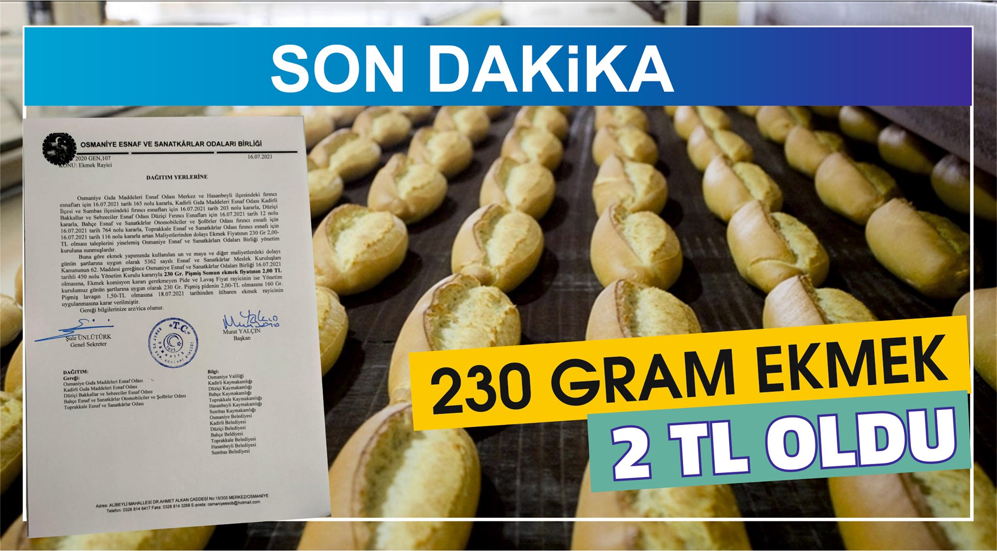 Osmaniye Esnaf ve Sanatkalar Odaları Birliği’nin almış olduğu kararla 230 gram ekmek 2 TL satılacak.