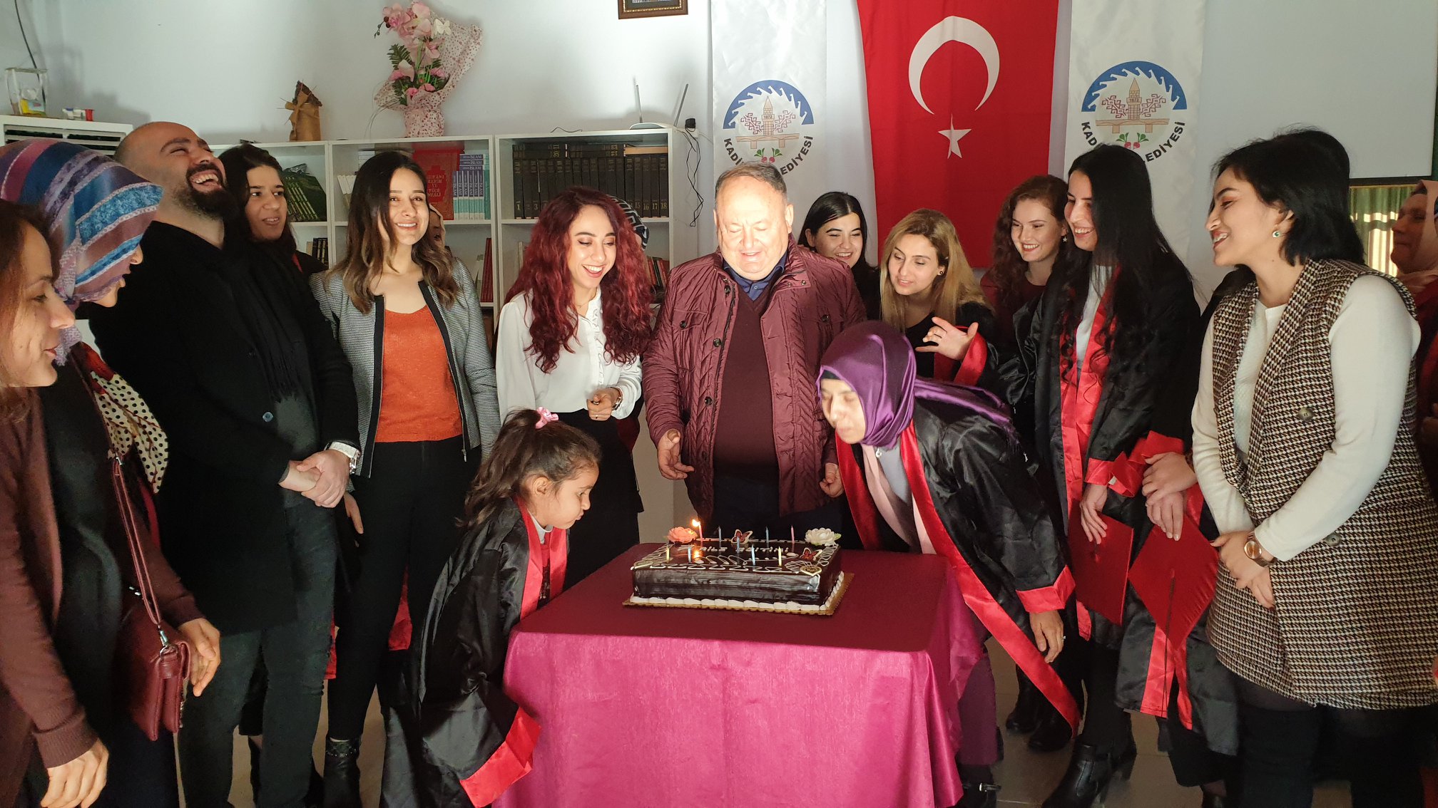 Kursiyerlere sertifikalarını veren Başkan Tarhan daha sonra pasta kesip kep fırlattı.