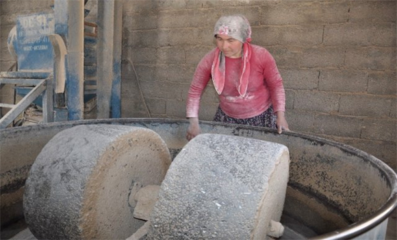 Sumbas ilçesinde 4 çocuk annesi Saniye Aki, eşinin yürüme engelli olması nedeniyle 15 yıl önce eşinden devraldığı değirmeni işleterek ailesinin geçimini sağlıyor.