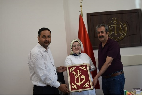 Taininin Kilis’e çıkması nedeniyle ilçemizden ayrılacak olan Hakime Barutçu’ya teşekkür ziyaretinde bulunan (AÇEK) Sivil Toplum Örgütü Başkanı Murat Dal ve Şoförler Oda Başkanı Faruk Dikişçioğlu plaket vererek, ilçeye yaptığı hizmetlerden dolayı teşekkür ettiler.