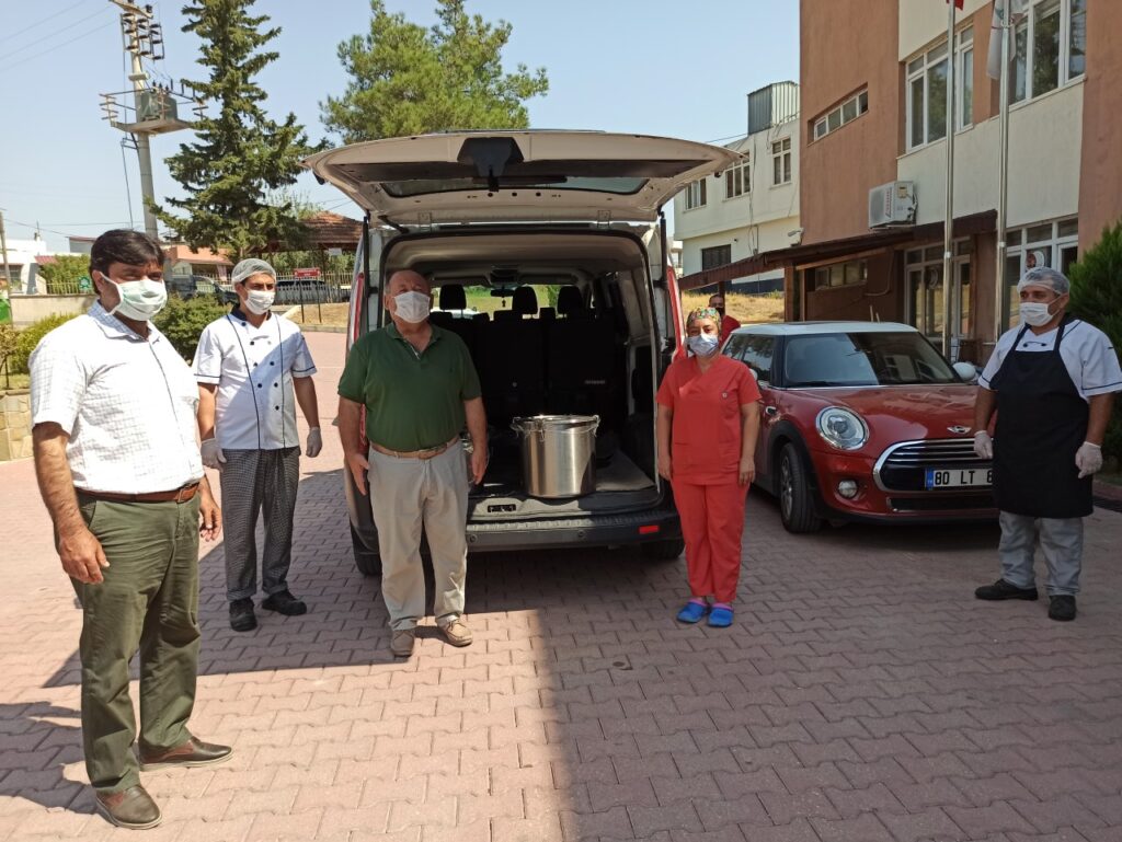 Belediye Başkanı Ömer Tarhan ise pandemi sürecinde insanların sağlığı için canlarını ortaya koyarak hizmet veren tüm sağlık çalışanlarına teşekkür ederek, “Kadirli Belediyesi olarak her yıl Muharrem Ayı’nda Çamlıkahve’de aşure dağıtımı gerçekleştiriyorduk. Bu yıl korona virüs dolayısıyla tüm dünya olarak zorlu bir süreçten geçmekteyiz. Bu süreçte en çok zorlananlar ise sağlık çalışanlarımız oldu. Bizler de bu yıl aşuremizi sağlık çalışanlarımız ile paylaşmak istedik. Gece gündüz demeden bizim sağlığımız için çalışan tüm sağlık personelimize Allah kolaylıklar versin. Çok zor bir süreçten geçiyorlar. Bu zorlu süreci inşallah en kısa sürede atlatırız” dedi. Menderes Özat-Zehra Balcılar