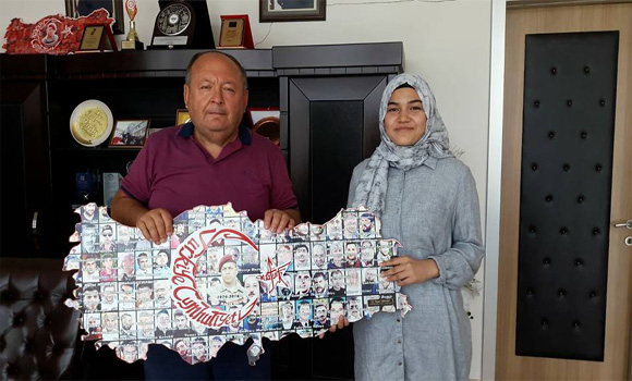 Kadirli’de 15 Temmuz konulu Hikaye yarışmasında dereceye giren ve Cumhurbaşkanlığı tarafından hikayesi basılarak yayımlanan Kadirli Atatürk Mesleki ve Teknik Anadolu Lisesi son sınıf öğrencisi Ayşe Beyza Dörtgöz’ü Belediye Başkanı Ömer Tarhan, ödüllendirdi.
