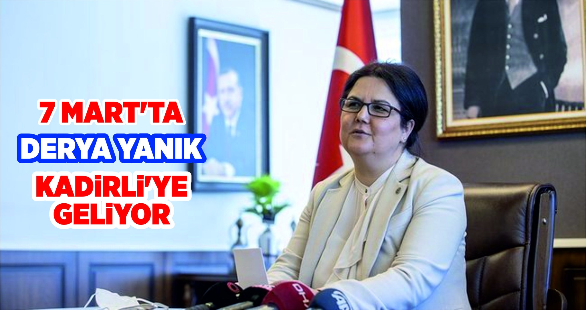 Aile ve Sosyal Hizmetler Bakanı hemşehrimiz Derya Yanık’ın 7 Mart Kadirli’nin Kurtuluş Bayramı törenlerine katılmak üzere Kadirli’ye geleceği bildirildi.