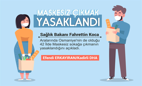 Sağlık Bakanının yaptığı açıklama ile Osmaniye’nin de içinde bulunduğu 42 ilde maskesiz sokağa çıkılmayacak.