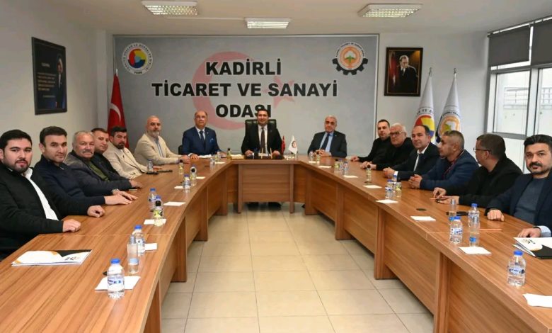 Başkan Olcar, Kadirli Ticaret ve Sanayi Odası Başkanı Mehmethan Yüksel ve yönetim kurulu üyelerinin katıldığı ziyarette, Kadirli’nin mevcut durumu, potansiyeli ve hedefleri üzerine ilk değerlendirmeler yaptı.