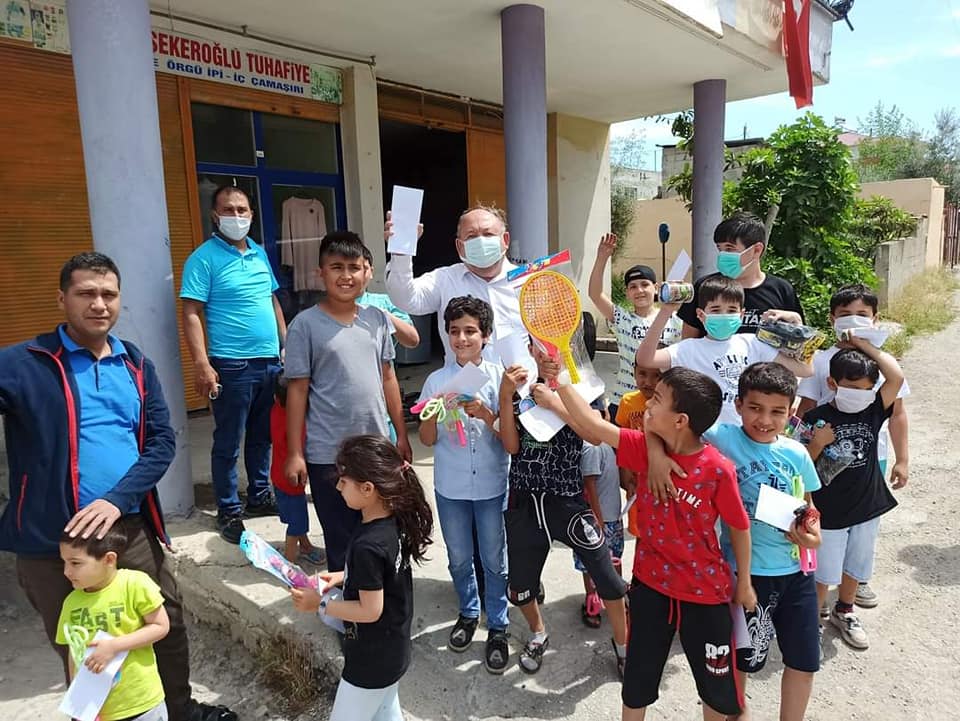 Kadirli Belediyesince sokağa çıkma kısıtlaması nedeniyle evlerinden çıkamayan çocuklar, Başkan Tarhan tarafından Bayram harçlığı ve çeşitli hediyelerle yüzü güldü.