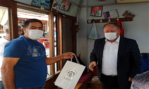 İş yerlerini dezenfekte ettiklerini belirterek, “2 ay sonra işyerlerini açan esnaflarımıza hayırlı işler dileklerimizi ilettik. Destek amacıyla içerisinde maske, dezenfekte ve tıraş malzemesi bulunan paketleri verdik.” diye konuştu.
