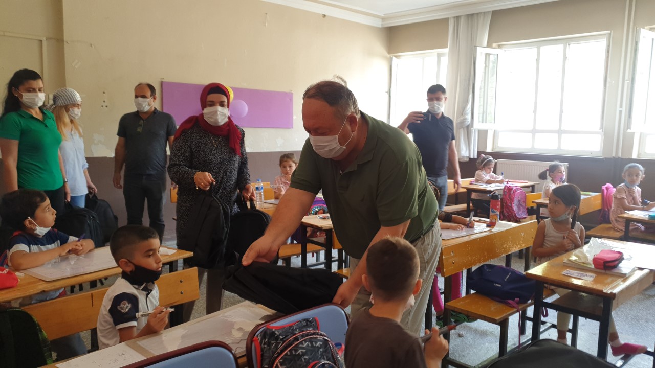 BAŞKAN TARHAN’DAN ÖĞRENCiLERE ÇANTA VE KIRTASiYE DESTEĞi