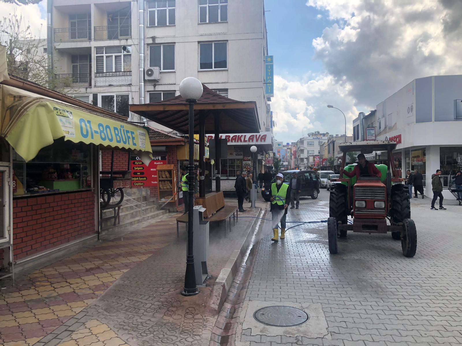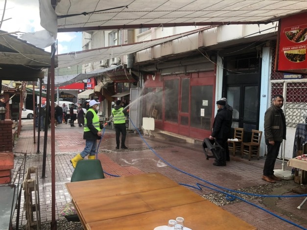 Vatandaşlarımızın yoğun olarak bulunduğu bölgelerde Koronavirüsle mücadele ekiplerimiz tarafından Dezenfekte çalışmalarımız tüm hızıyla devam ediyor diyen Başkan Tarhan ” Camilerimizden Kamu Kurum ve Kuruluşlarına, eczanelerden çamlıkahveye, şehir içi dolmuşları ve servislerden tutunda Cem evine kadar şehrimizin her noktasında dezenfekte çalışmalarına devam ediyoruz. Bu çalışmalarımız yanında ekiplerimiz vatandaşlarımızın yoğun olarak kullandıkları duraklara kadar dezenfekte çalışmalarını gece gündüz demeden sürdürüyor.