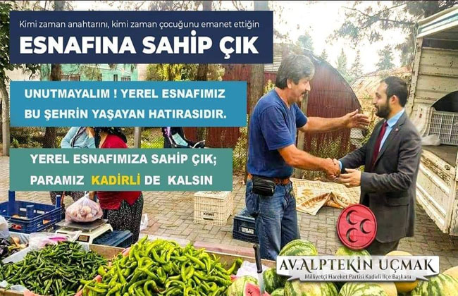 MHP Kadirli İlçe Başkanı Av. Alptekin Uçmak, ilçe halkına yerel esnaftan alışveriş yapmaları için çağrıda bulundu.
