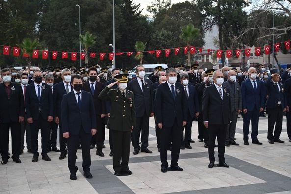 Tören, Atatürk Anıtına Valilik, Garnizon Komutanlığı ve Belediye Başkanlığı çelenklerinin sunulmasıyla başladı. Daha sonra Büyük Önder Gazi Mustafa Kemal Atatürk’ün vefat saati olan 09.05’de Bayrağımız yarıya indirilerek 2 dakikalık saygı duruşunda bulunuldu ve ardından İstiklal Marşımız okundu.