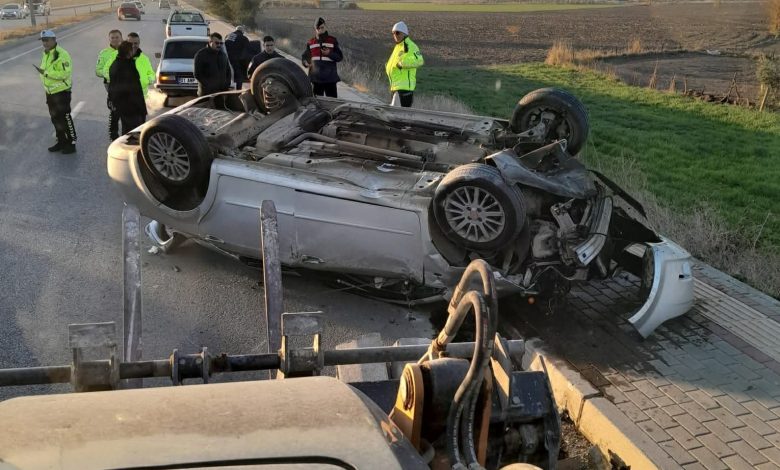 ÇEVRE YOLUNDA OTOMOBİL DEVRİLDİ
