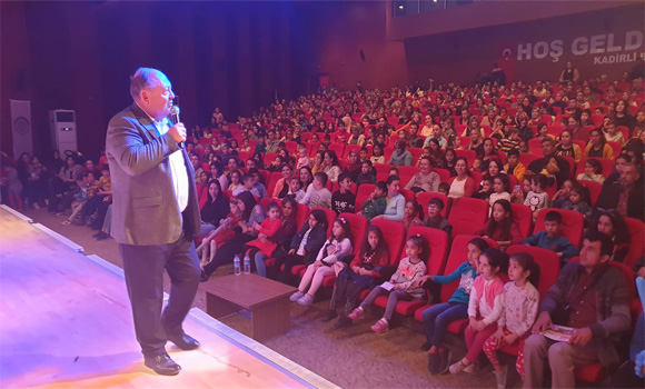 “ Belediye olarak okullara verilen kısa bir mola nedeniyle çocuklarımızı Cingöz İle Camgöz Adli müzikli çocuk oyunu ile buluşturduk. Yılmaz Onay’ın yazdığı Soner Çelik’in yönettiği müzikli Çocuk oyunu minik öğrencilerimiz tarafından büyük beğeni ile izlendi. Tiyatro ve çocuk oyunları gibi etkinliklerimiz devam edecek. Ocak ayında da bir birinden ünlü Tiyatro oyunlarıyla Kadirlileri buluşturacağız. Kadirli Belediyesi sosyal ve kültürel anlamda sorumluluklarının bilincinde ve bu doğrultuda çalışmalarına devam etmektedir” dedi.