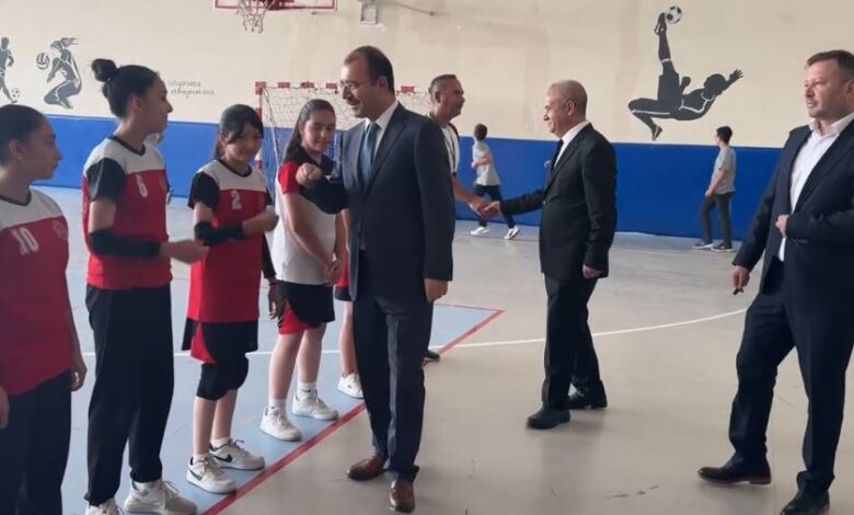 Kaymakam Erdinç DOLU, “Kadirli Sporla Buluşuyor Projesi” kapsamında Kadirli Şehit Kaan Çalin Mesleki ve Teknik Anadolu Lisesi Spor Salonunda Kadirli Koleji Ortaokulu İle Atatürk Ortaokulu takımları arasında oynanan Cumhuriyet Turnuvaları başlangıç maçının ilk düdüğü çalarak turnuvayı başlattı.