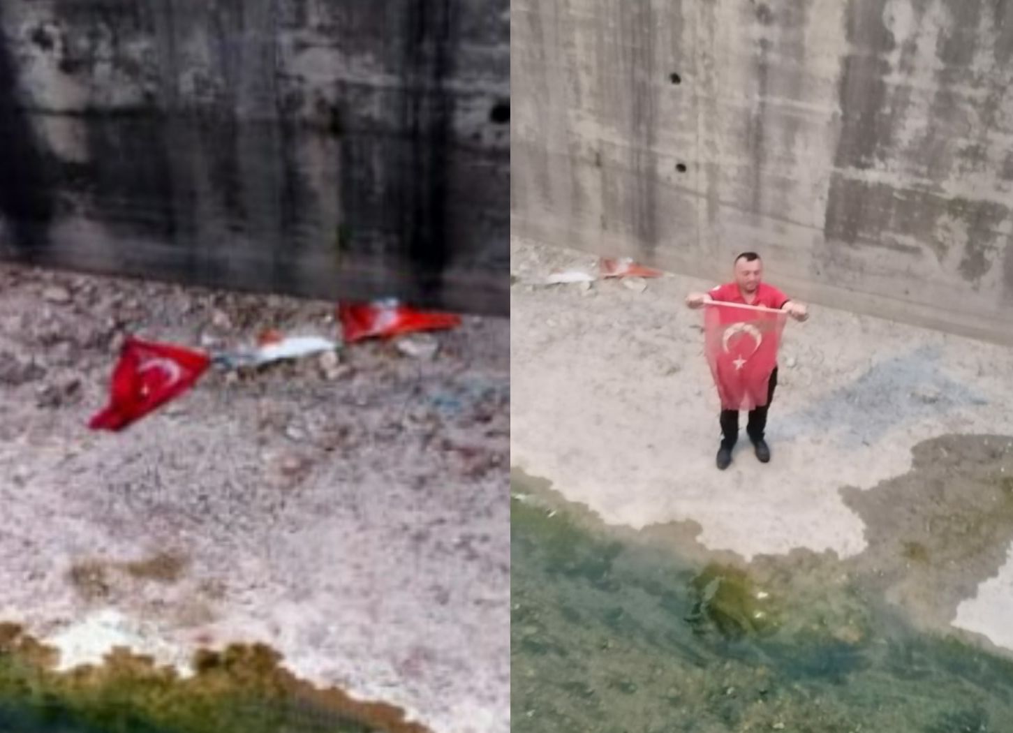 Tarhan’ın talimatıyla mahalleye giden itfaiye ekipleri, Türk bayrağını dere yatağından çıkardı
