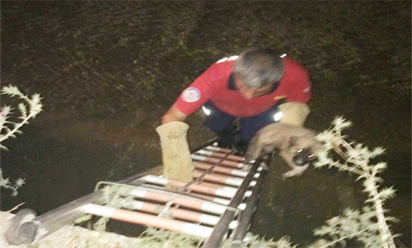 Olay yerine gelen Kadirli belediyesi itfaiye ekibinden bir kişi, merdiven salınarak dereye indi. Derede mahsur kalan köpek, itfaiye görevlisi tarafından çıkarıldı.