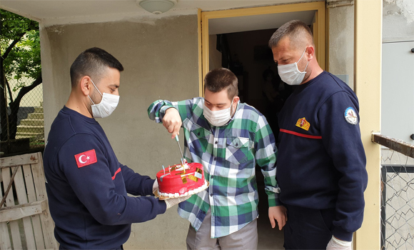 Cemalpaşa Mahallesinde ikamet eden ve 110’u arayarak 23 yaşındaki Down Sendromlu oğlu Furkan Özdil’in doğum günü olduğunu belirten Döne Özdil itfaiye ekiplerinden destek istedi.