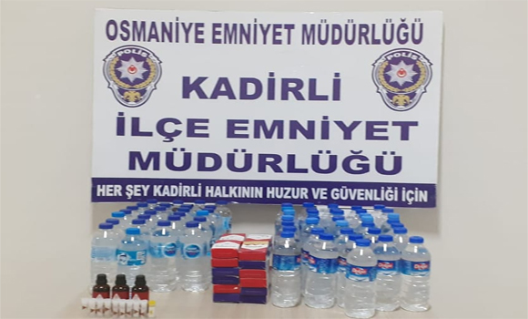 Kadirli ilce Emniyet Müdürlüğü ekipleri yapılan kaçak içki ve sigara operasyonunda 5 iş yerinde adli makamlardan alınan arama kararı ile yapılan aramada,62 adet 0.5 litreĺik pet şişe içerisinde toplam 27.5 litre Kaçak rakı