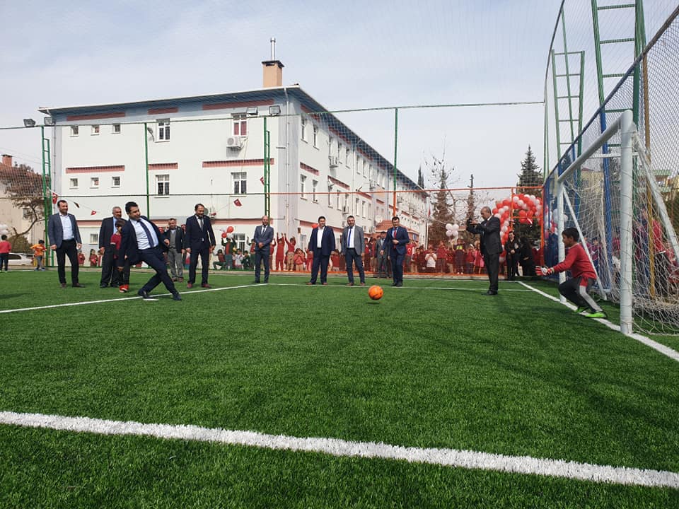 Kadirli Ergenekon Şehit Mehmetçik İlkokulu bahçesindeki eski saha, Kaymakam Ahmet Arık’ın girişimleri ve hayırseverlerin katkısıyla yenilenerek hizmete açıldı.