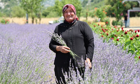 Tenkerli Mahallesi’nden Bedia Arı devlet desteği ile 5 dönümlük arazide lavanta üretimi yaptıklarını belirterek, “Devlet desteğiyle lavanta bahçesi kurduk. Her gün yüzlerce kişi geliyor. Gelen bir daha geliyor. Çiçekleri çok severdim. Bu iş emek istiyor ama çok güzel. Lavanta demetlerini 30 TL’den satıyoruz. Çok mutluyuz” dedi.