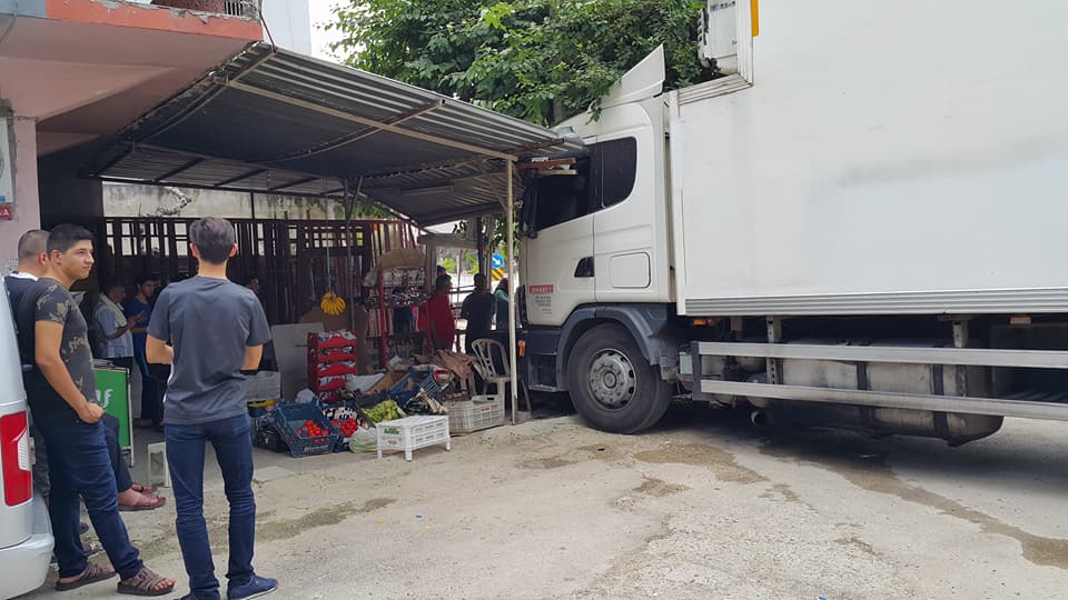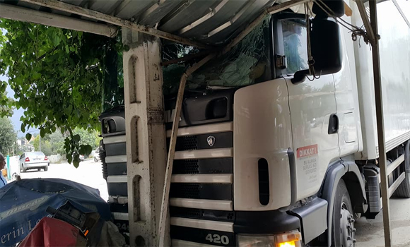 Yokuş aşağı hareket etmeye başlayan çekici, 60 metre gittikten sonra yol kenarındaki Ekrem Çaylı’ya ait bakkalın önünde bulunan elektrik direğine çarparak durabildi.