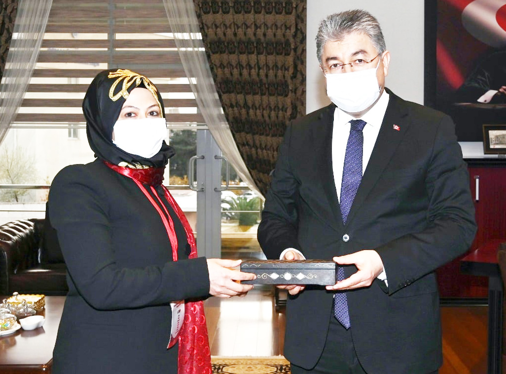 Gaziantep’in Kurtuluşu’nun 100. yılı etkinlikleri kapsamında Gaziantep Valiliği, Gaziantep Büyükşehir Belediyesi ve Gaziantep İl Milli Eğitim Müdürlüğü iş birliğinde Türkiye’nin 80 iline Gaziantep’ten öğretmen ve öğrenciler eşliğinde toprak ve bayrak gönderildi. Vali Dr. Erdinç Yılmaz, Gaziantep’in Kurtuluşunun 100’üncü Yılı Etkinlikleri kapsamında Gaziantep’ten Şehitlik toprağı ve Şanlı Türk Bayrağımızı getiren Öğretmen Filiz Özdal ve Öğrenci Hatice Kübra Kaya’yı makamında kabul etti.