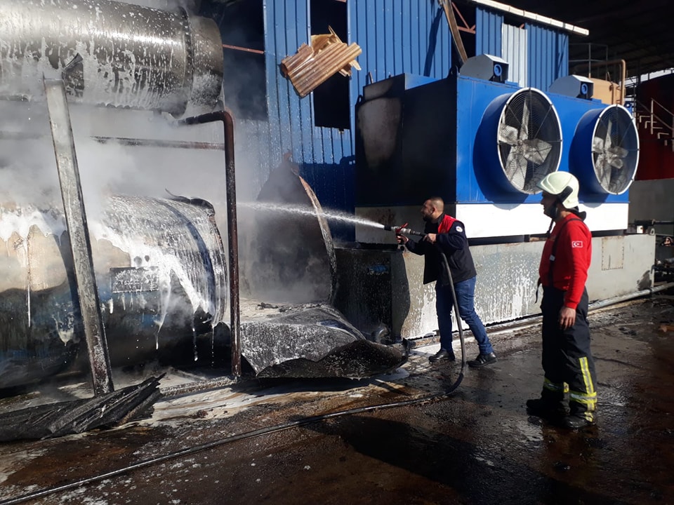 Alınan bilgiye göre, Osmaniye-Kadirli kara yolu Anberinarkı köyü yakınlarında bulunan bir geri dönüşüm fabrikasının yağ tankındaki gaz sıkışması sonucu patlama oldu ve yangın çıktı.