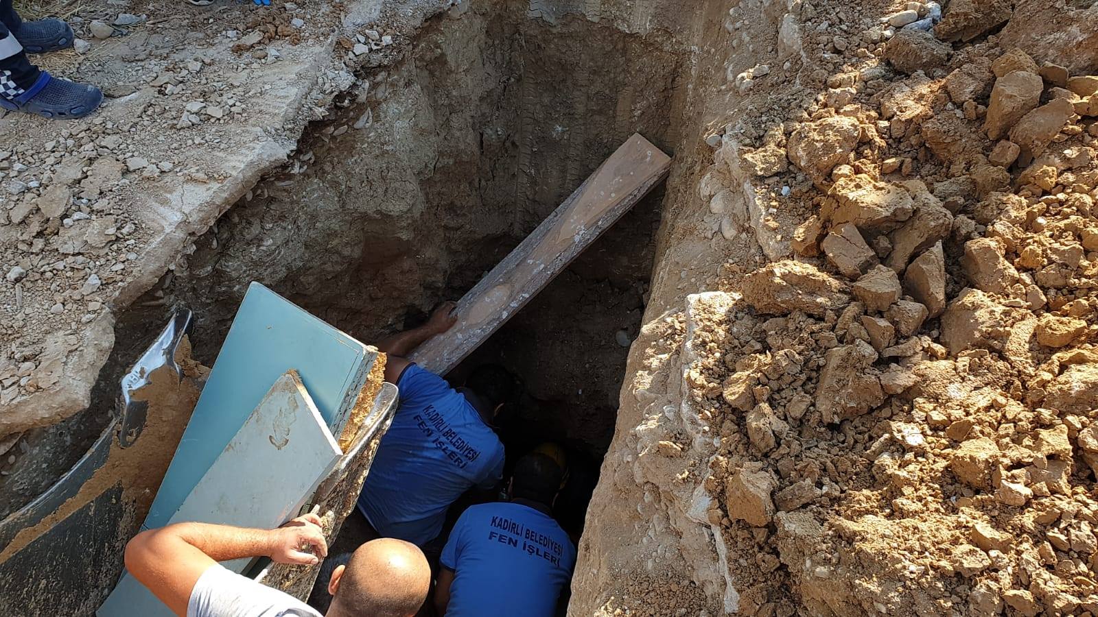 Kadirli’de kanalizasyon çalışmasınde meydana gelen göçükte toprak altında kalan işçi kurtarıldı.