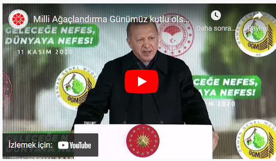 Cumhurbaşkanı Erdoğan tarafından 2019 yılında yayımlanan bir genelgeyle, her yılın 11 Kasım günü “Milli Ağaçlandırma Günü” olarak kutlanmaktadır.