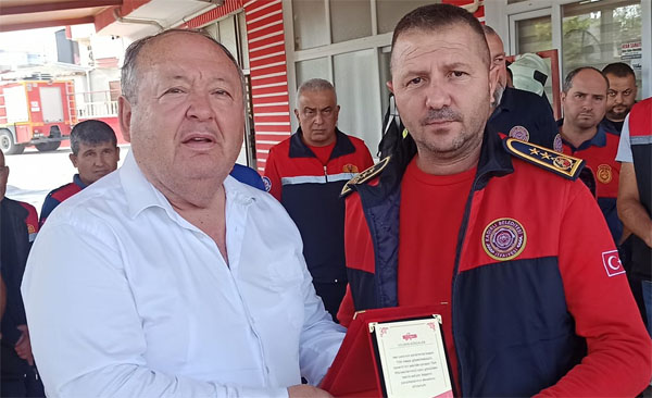 Plaket takdiminde Belediye Başkan Yardımcısı  Cezmi Yavuz ve İtfaiye Müdürü  Oğuzhan Büyükakçalı’da hazır bulundu.