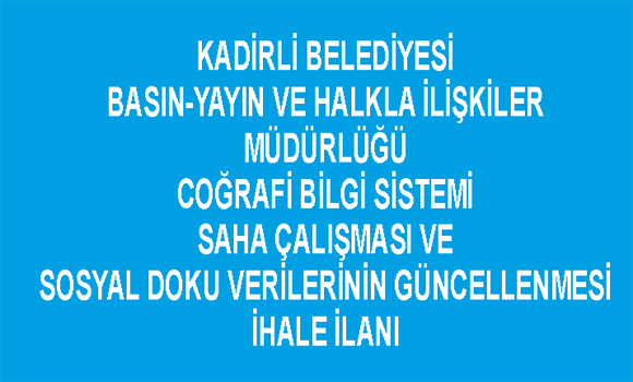KADİRLİ BELEDİYESİ BASIN-YAYIN VE HALKLA İLİŞKİLER MÜDÜRLÜĞÜ COĞRAFİ BİLGİ SİSTEMİ SAHA ÇALIŞMASI VE SOSYAL DOKU VERİLERİNİN GÜNCELLENMESİ İHALE İLANI