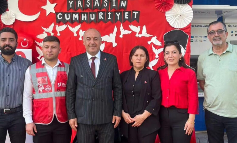 CHP Kadirli İlçe Başkanı, Gençlik Kolları Başkanı ve Kadın Kolları Başkanı’nın katılımıyla İş Bankası önünde gerçekleştirilen etkinlikte, “Yaşasın Cumhuriyet” yazılı özel bir alan oluşturuldu. Bayraklar, balonlar ve kırmızı-beyaz süslemelerle donatılan stantta vatandaşlara Cumhuriyet’in anlam ve önemi anlatıldı.