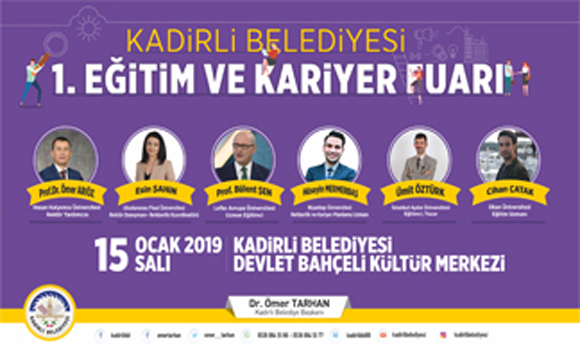 Belediye olarak bizlerde bu talep doğrultusunda ilçemizde ilki düzenlenecek Eğitim ve Kariyer fuarını tertip etme kararı aldık. 15 Ocak 2019 tarihinde ilçemizde bulunan Kadirli Belediyesi Devlet Bahçeli Kültür merkezinde düzenlenecek olan bu fuara katılıp, öğrencilere üniversitelerin tanıtımını yapma imkanı sunacağız. Gençlerimizin eğitim hayatlarına yön verecek tercihler hakkında bilgi sahibi olmaları amacıyla bu etkinliği düzenliyoruz. Şehrimizde ilk defa düzenlenen bu fuarla birlikte gençlerimiz okulların olduğu şehirlere gitmeden burada bilgi ve fikir alışverişinde bulunacaklar” dedi.