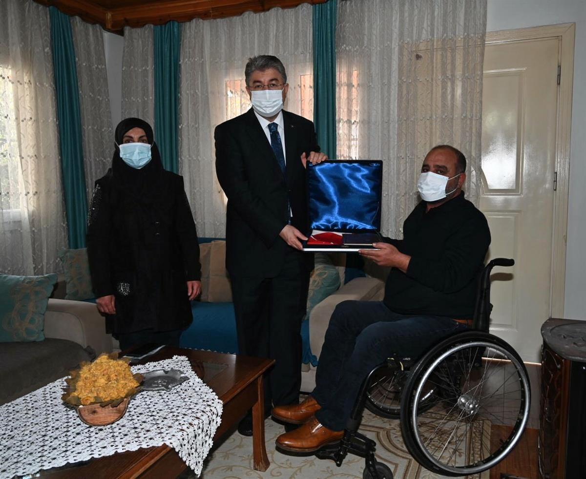 VALİ DR. ERDİNÇ YILMAZ, GAZİ JANDARMA UZMAN ÇAVUŞ MUSTAFA AKSU VE AİLESİNİ ZİYARET ETTİ