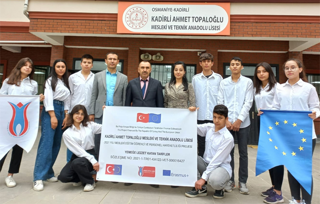 Kadirli’de yiyecek içecek ve konaklama hizmetleri alanında eğitim öğretim faaliyetleri sağlayan, gençlerimizi mesleki alanda kendini geliştirmiş, eğitim gördüğü alanlarda iş tecrübesine sahip, üretken, topluma faydalı ve özgüveni yüksek bireyler olarak yetiştirmeyi bir gaye edinen Ahmet TOPALOĞLU Mesleki ve Teknik Anadolu Lisesi Erasmus projeleri ile Avrupa’ya açılıyor. Güzide okulumuz , “Yemeğe lezzet Katan Tarifler” isimli proje kapsamında 12 öğrenci ve 4 öğretmen ile Almanya’ya ve İsveç’e gidiyor.28 gün sürecek olan hareketlilik boyunca öğrencilerimiz, yöremizde de yaygın şekilde tüketilen “et ürünlerinin” dünya mutfağındaki yorumunu ,etin marinasyon yöntemlerini ve uluslararası pişirme tekniklerini işbaşı gözlem ve staj yoluyla öğrenme fırsatı bulacaklar. Bunun yanı sıra, farklı bir ülkede staj yapmak öğrencilerimizin dilsel gelişimine ve kültürel etkileşimine çok büyük bir yarar sağlayacaktır. Okul Müdürü Serdar SEVMEZ, “Ahmet TOPALOĞLU Mesleki ve Teknik Anadolu Lisesi ailesi olarak bizim en büyük amacımız öğrencilerimizin mesleki alanlarda kendilerini yetiştirecekleri elverişli ortamları sağlamak. Okul binasındaki uygulama derslerinde ve turistik işletmelerde bu olanakları mümkün kılıyoruz. Ancak yurtdışındaki staj imkanı da öğrencilerimize çok farklı bir deneyim kazandıracaktır. En büyük temennimiz bu tür etkinliklerin sürdürebilir olması. Gerçekleşmesinde emeği geçen herkese teşekkür ederim.” dedi.