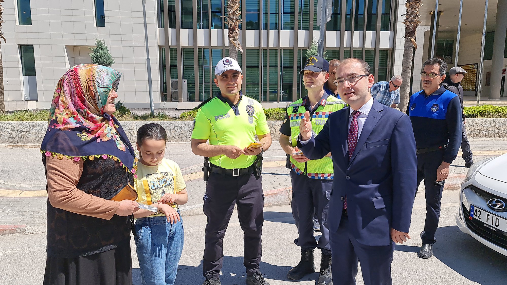 Durdurdukları araçlarda bulunan sürücü ve yolculara proje hakkında bilgi veren Kadirli Kaymakam Vekili Ali İhsan Selimoğlu, 7-13 Mayıs Trafik Haftası çerçevesinde ‘Yayalar İçin 5 adımda güvenli trafik’ mottosunun etkin olarak anlatılması, trafik güvenliği bünyesinde yürütülen faaliyetlere toplumsal desteği artırmak, bilgilendirmek, trafik güvenliğine katkı sağlayacak davranışları artırmak amacıyla sürücü ve vatandaşlara broşür dağıtıp uyarılarda buldu.