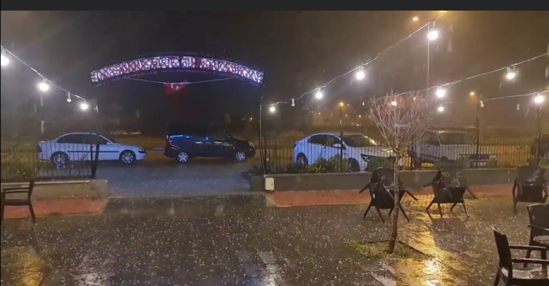 Akşam 19.30 sularında başlayan sağanak etkisini gösterirken bir anda dolu yağışı etkili oldu.