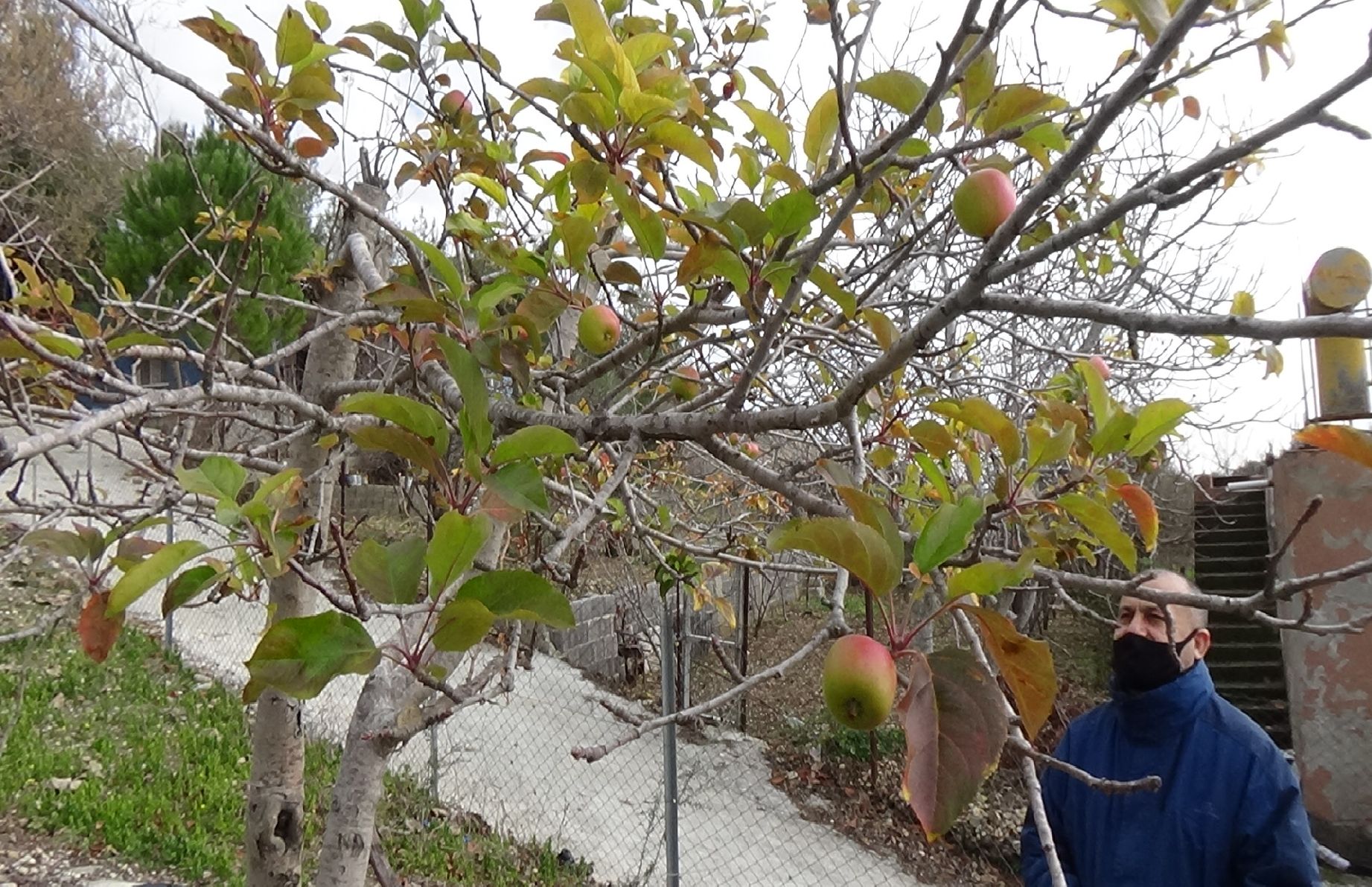 Kadirli’de Kış ortasında meyve veren Elma Ağacı Şaşırttı