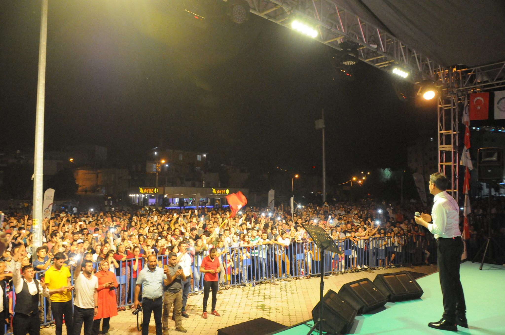 Kadirli’de 19 Mayıs Atatürk’ü Anma, Gençlik ve Spor Bayramı etkinlikleri çerçevesinde Mustafa Yıldızdoğan konseri düzenlendi. Kadirli Belediyesi tarafından öğretmenevi yanındaki alanda düzenlenen konserde sahneye çıkan Mustafa Yıldızdoğan, sevilen türkülerini seslendiren Mustafa Yıldızdoğan, Ölürüm Türkiyem, Şehitler Ölmez gibi sevilen şarkılarının yanı sıra 15 Temmuz şehitleri için yazdığı Gittiler isimli şarkısını konsere katılan binlerce kişi ile birlikte söyledi. Konser esnasında Belediye Başkanı Dr. Ömer Tarhan tarafından Yıldızdoğan’a yöreye özgü Karatepe kilim ve çiçek hediye edildi. Başkan Tarhan, yaptığı konuşmada, “Selam olsun Bandırma’ya, Selam olsun tayfalara, selam olsun Atatürk’e, selam olsun Kızıl Elma’ya, selam olsun Türk gençliğine” diyerek, Atatürk’ün izinde, gençliğin yanında Türk Milleti’nin ve Kadirlilerin emrinde hizmetlere devam edeceğini kaydetti. Kadirli olmaktan dolayı memnuiyetini anlatan Yıldızdoğan ise Belediye Başkanı Dr. Ömer Tarhan’a teşekkür ederek, “Kadirli’de olmak, sizlerle olmak bize onur verir, gurur verir. En güzel onur ve gurur ay yıldızlı bayrağın altında, minare seslerinin altında farklı düşünsek de, farklı baksak da aynı bayrağın altında ölürüm Türkiye’m diyebilmek en güzel şeref ve ödüldür. Bizleri sizlerle buluşturan çok değerli büyüğümüz, kıymetli insan Belediye Başkanımız sayın Dr. Ömer Tarhan ve diğer emeği geçenlere teşekkür ediyorum.” diye konuştu. Yıldızdoğan, yaklaşık iki saat boyunca sevilen şarkılarını seslendirdi. Konsere, MHP İlçe Başkanı M. Akif Ortak, Osmaniye Milletvekili ve Milletvekili Adayı Ruhi Ersoy, Osmaniye Milletvekili Adayı Alptekin Uçmak, Ülkü ocakları İl Başkanı Hasan Şahin Ceylan, Kadirli Ülkü Ocakları Başkanı Recep Gümüş, belediye ve il genel mecli üyeleriyle binlerce vatandaş katıldı.