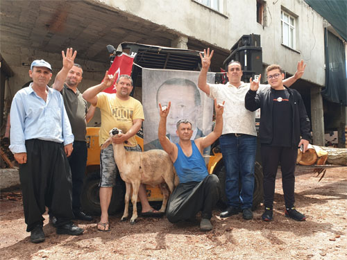 Dere Mahallesi’nde faaliyet gösteren kereste atölyesi sahibi Sinan Bilen (45), Cumhurbaşkanı Erdoğan’ın tekrar seçilmesi nedeniyle iş yerinin önünde işçileriyle dua ederek, kurban kestirdi.