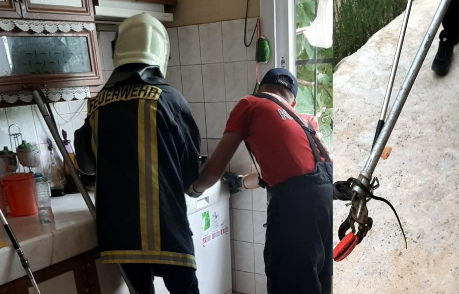 MUTFAK DOLABINA GİREN YILAN İTFAİYE YAKALADI