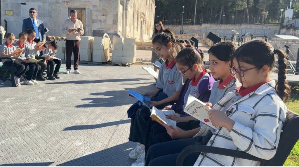 Kaymakam DOLU, ilçenin tarihî ve kültürel miraslarından biri olan Ala Camii bahçesinde, Mustafa Konaklı Ortaokulu öğrencileriyle birlikte düzenlenen kitap okuma etkinliğine katıldı.