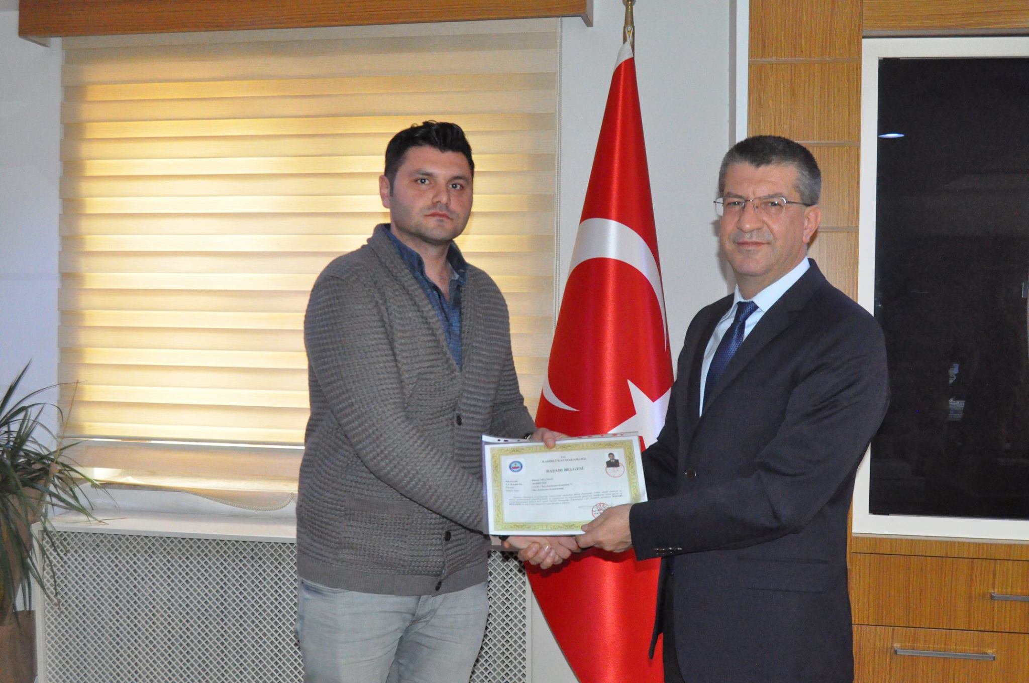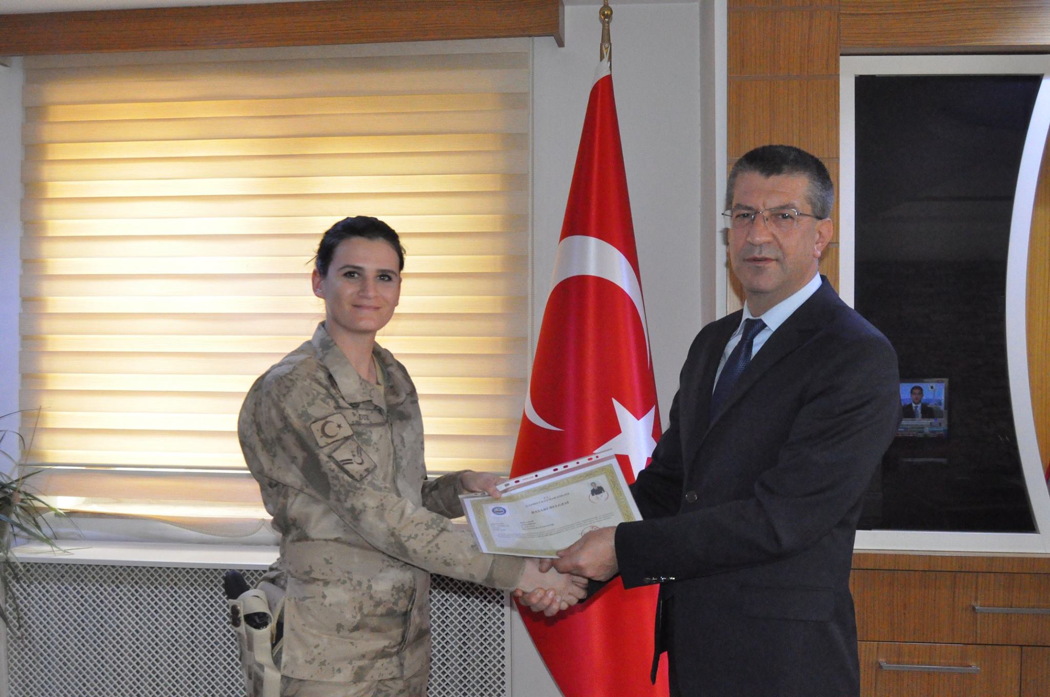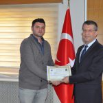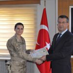 Daha sonra İlçe Jandarma Komutan V. Bülent Akcadağ ve diğer personele başarı belgelerini takdim etti.