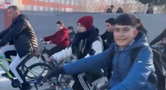 Küçük öğrencinin okula sürekli bisikletle geldiğini gören arkadaşları da ona destek olmak için onlarda bisikletle okula gelmeye başladı.