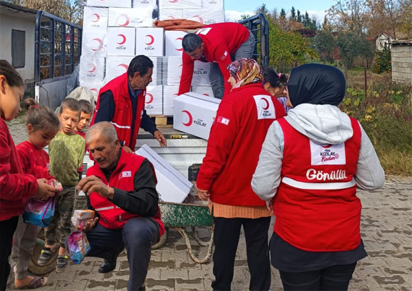 Kışlık giyimden, gıdaya, hijyen malzemelerine varana kadar  çalışmalarına devam eden Kızılay görevlileri vatandaşları mutlu ediyor.