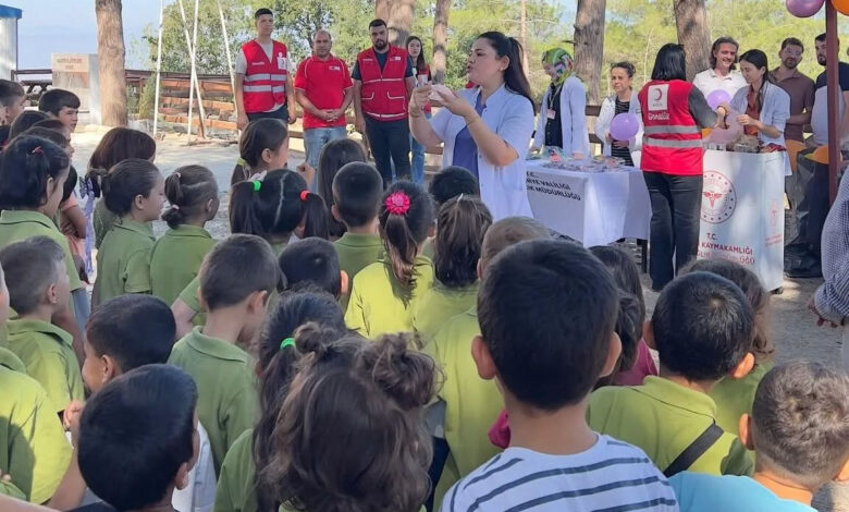 Yukarı Çiyanlı İlkokulu ve Ortaokulu öğrencilerini ziyaret eden ekipler, hem sağlık hem de afet bilinci konularında bilgilendirme yaptı.